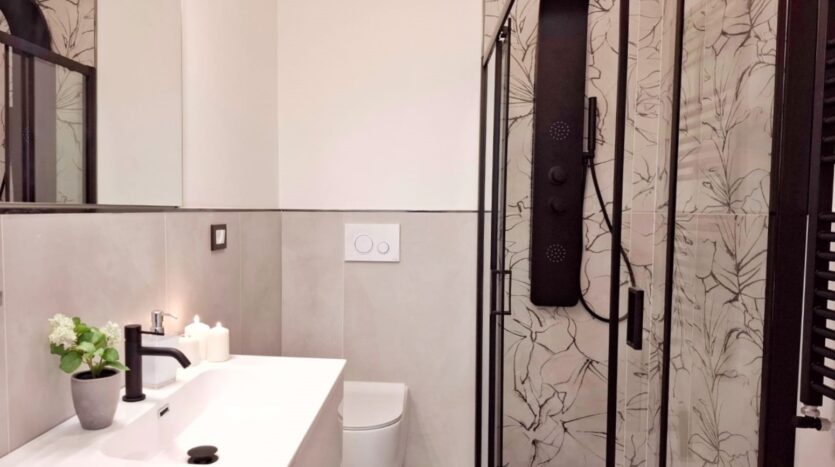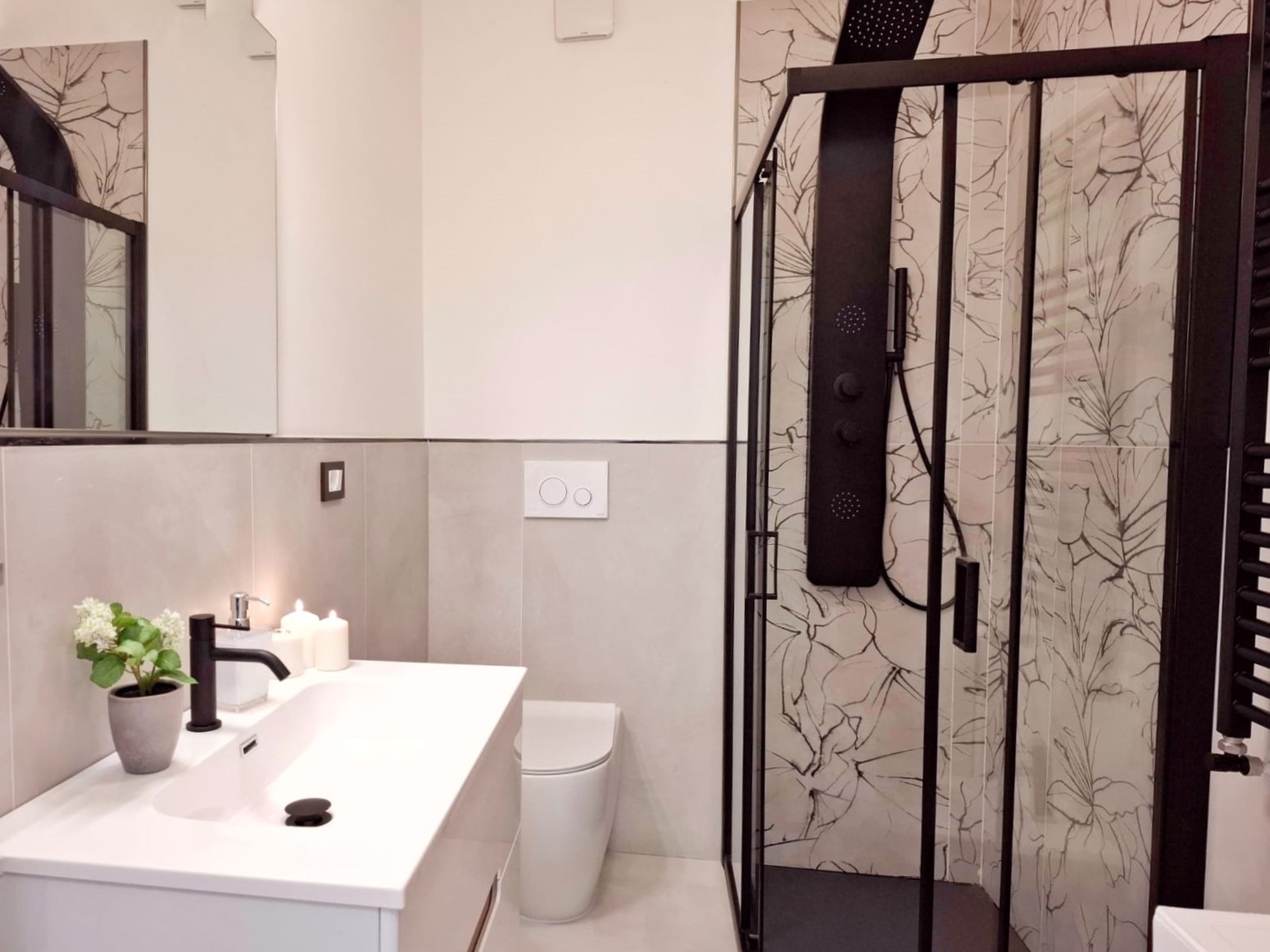 – Sanitari a terra di alta gamma e bagni completi di box doccia;
