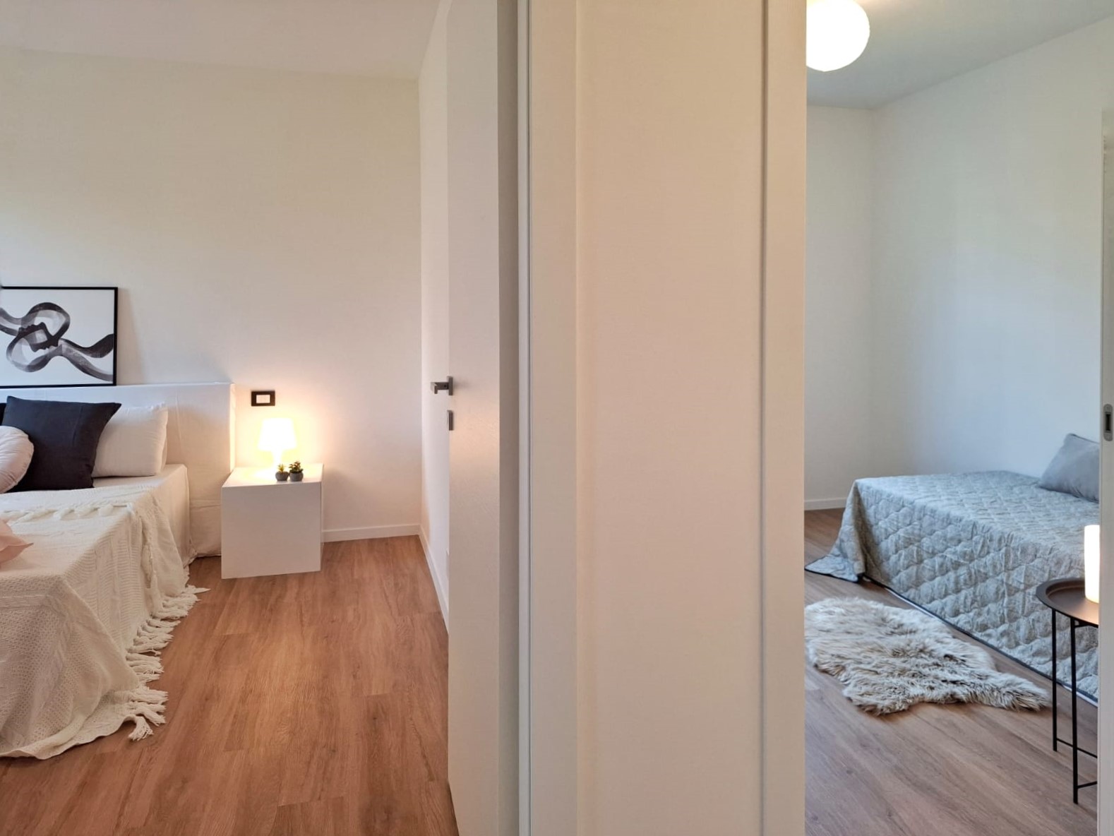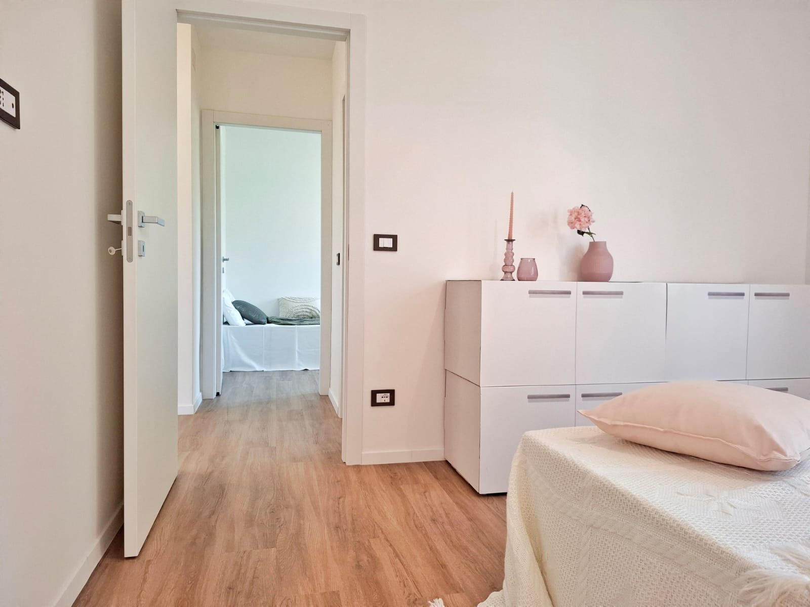 – Porte interne bianche con chiusura magnetica e maniglie satinate;